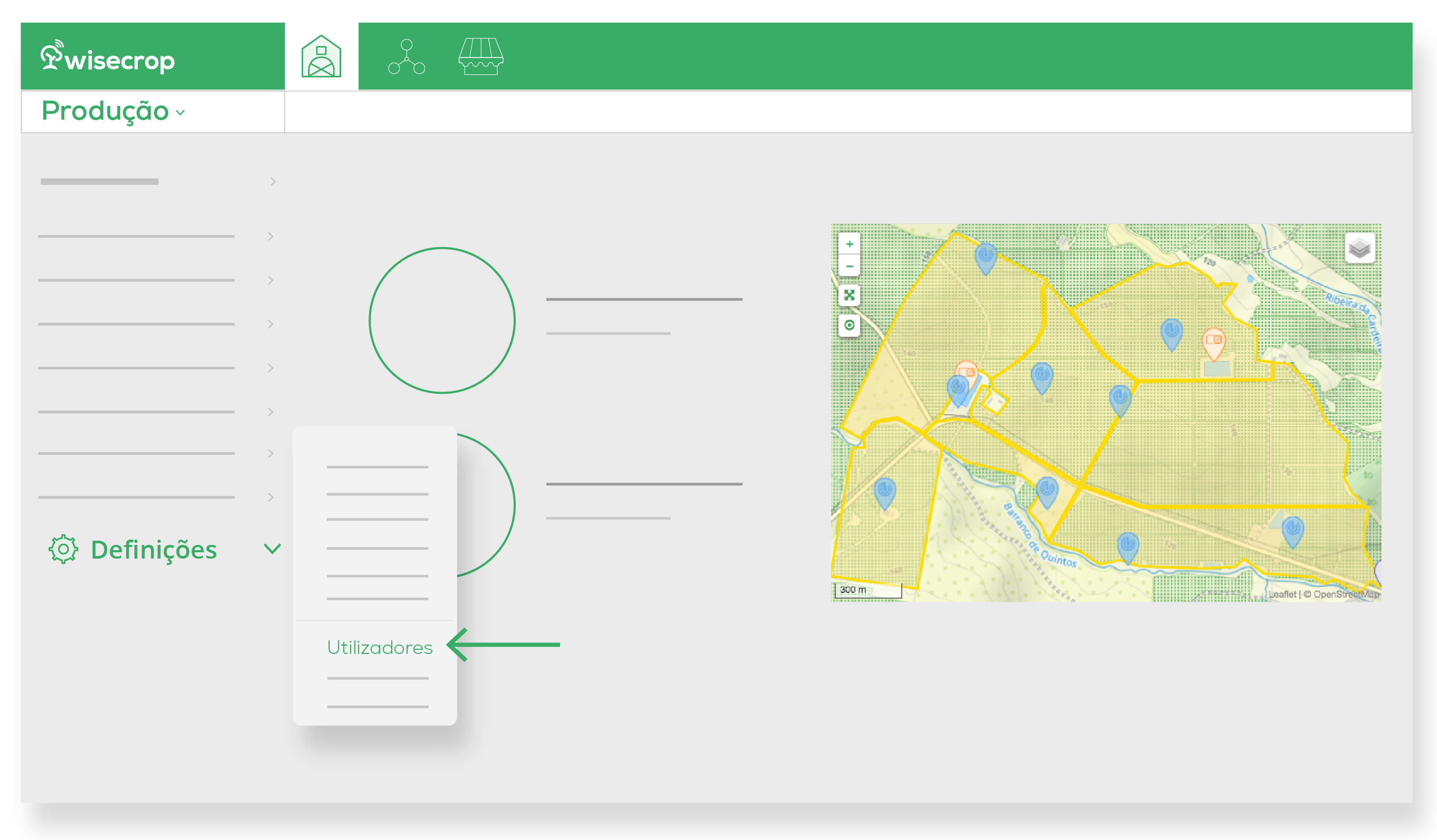 Na página Produção abra o menu Definições e clique na opção Utilizadores;