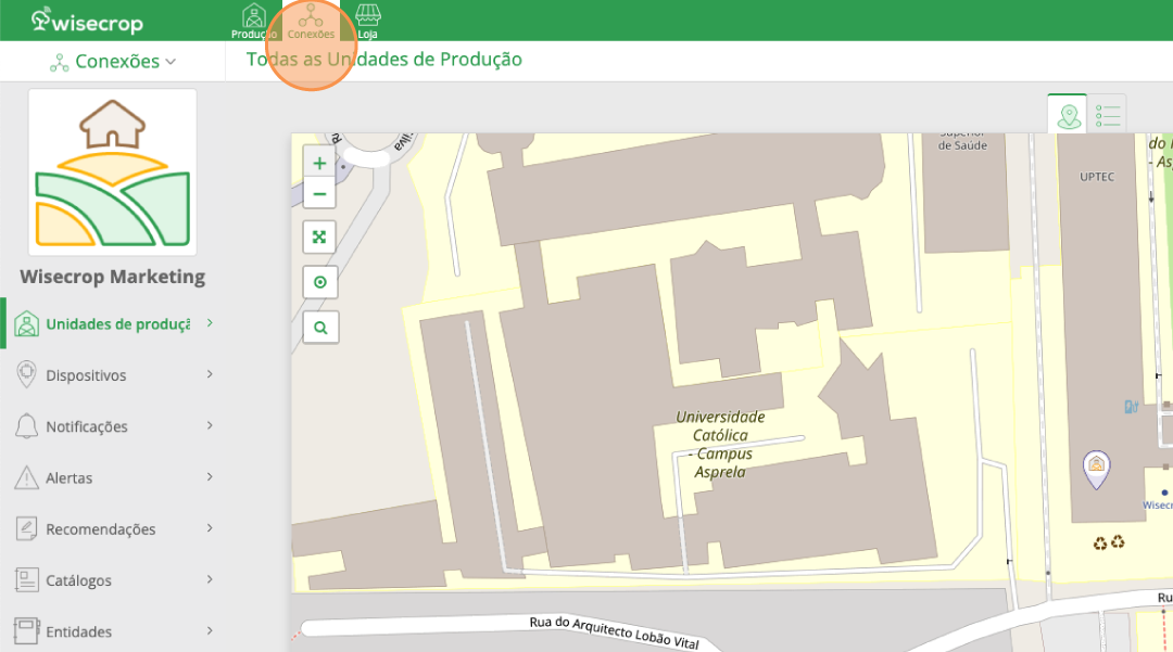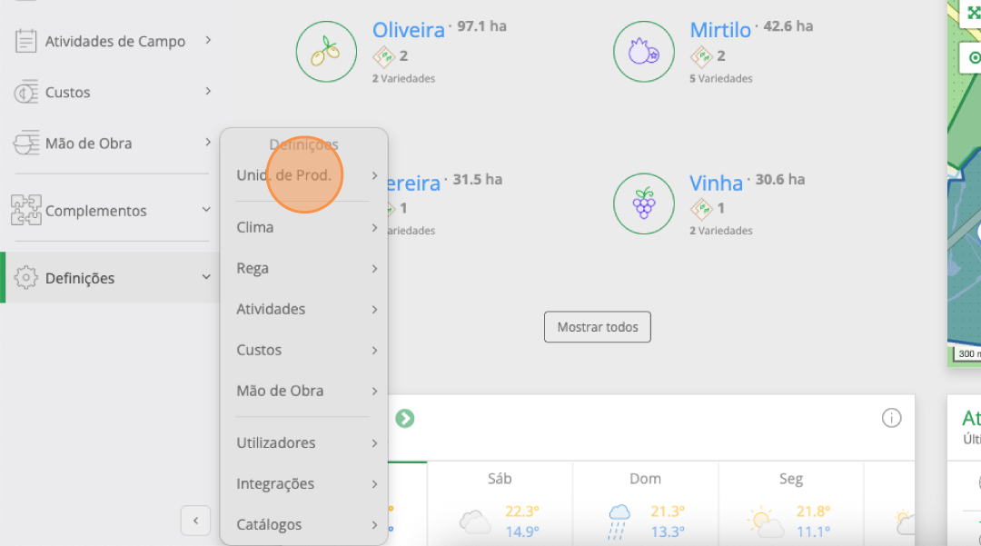 - Em Produção, aceda a Definições e clique na opção Unidades de Produção.