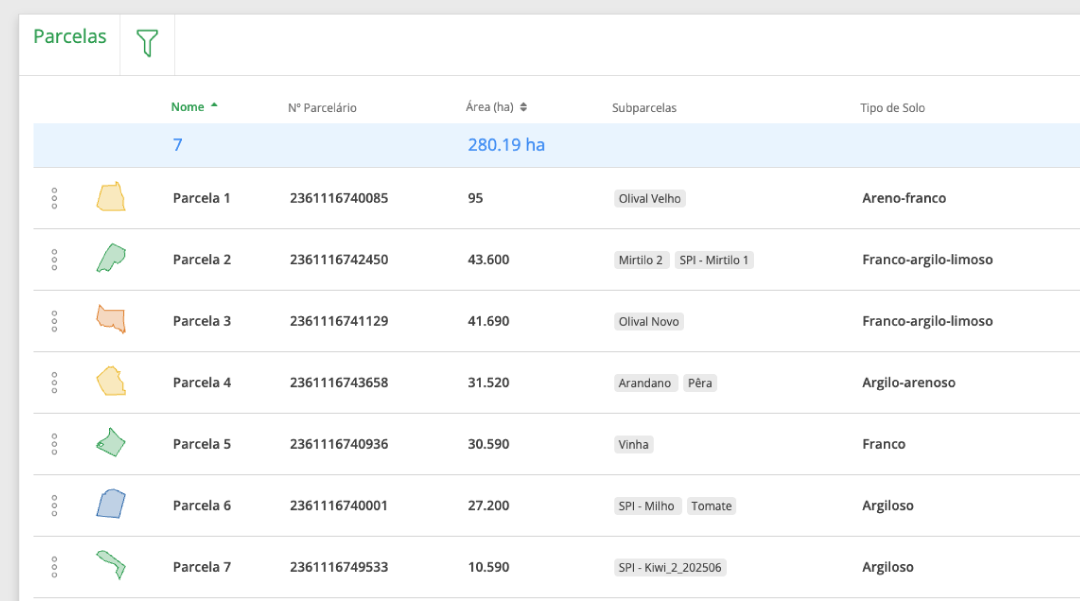 - Valide individualmente cada Parcela para garantir que toda a informação está correta.