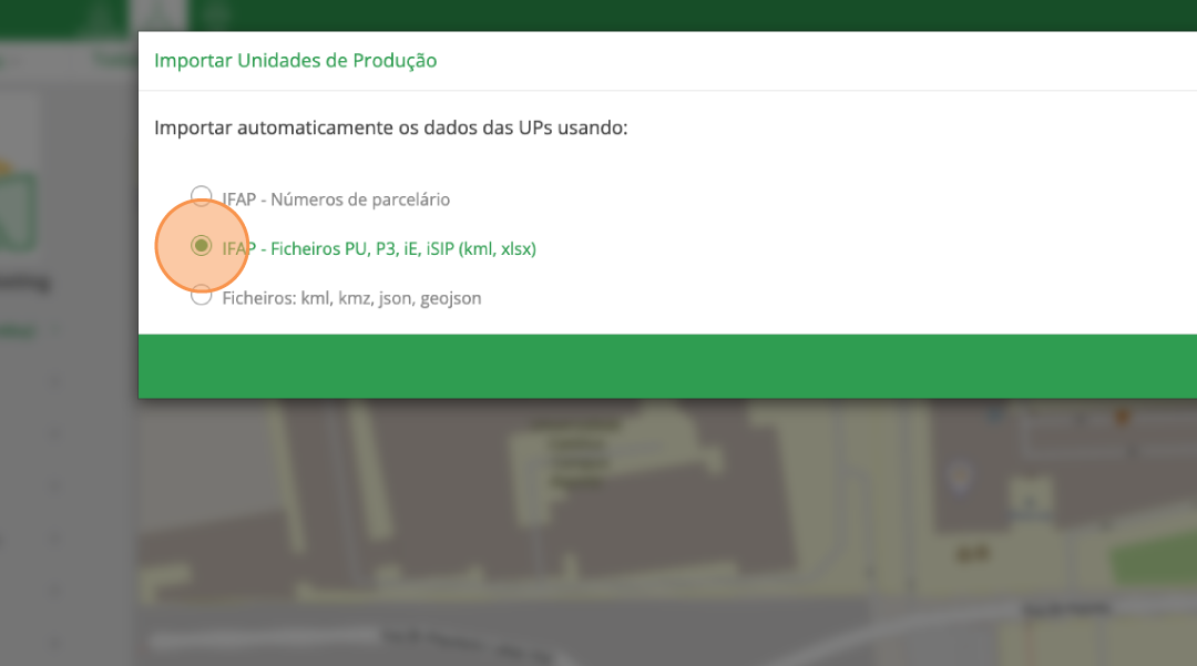 - Na janela que abre, selecione a segunda opção: IFAP - Ficheiros PU, P3, iE, iSIP