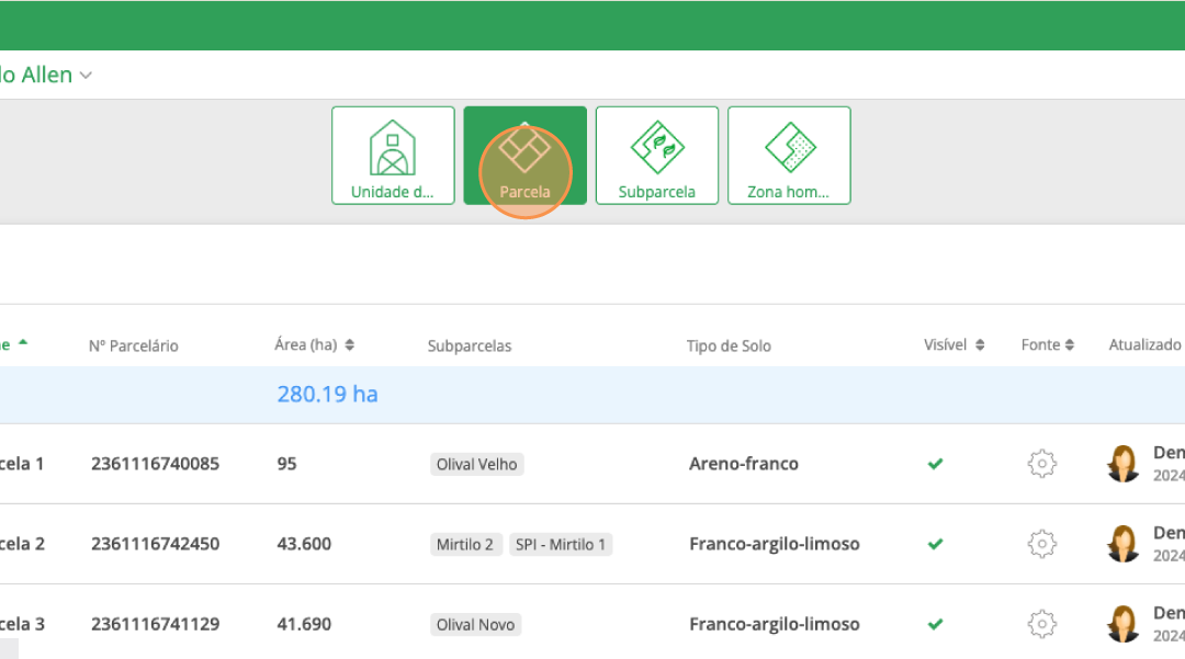 Depois de criar a Unidade de Produção deve adicionar as respetivas parcelas (Saiba como deve estar estruturada a Unidade de Produção). Adicionar Parcelas Passo 1. Abrir as definições Abra o menu Definições e clique na opção Parcelas e Subparcelas. ...